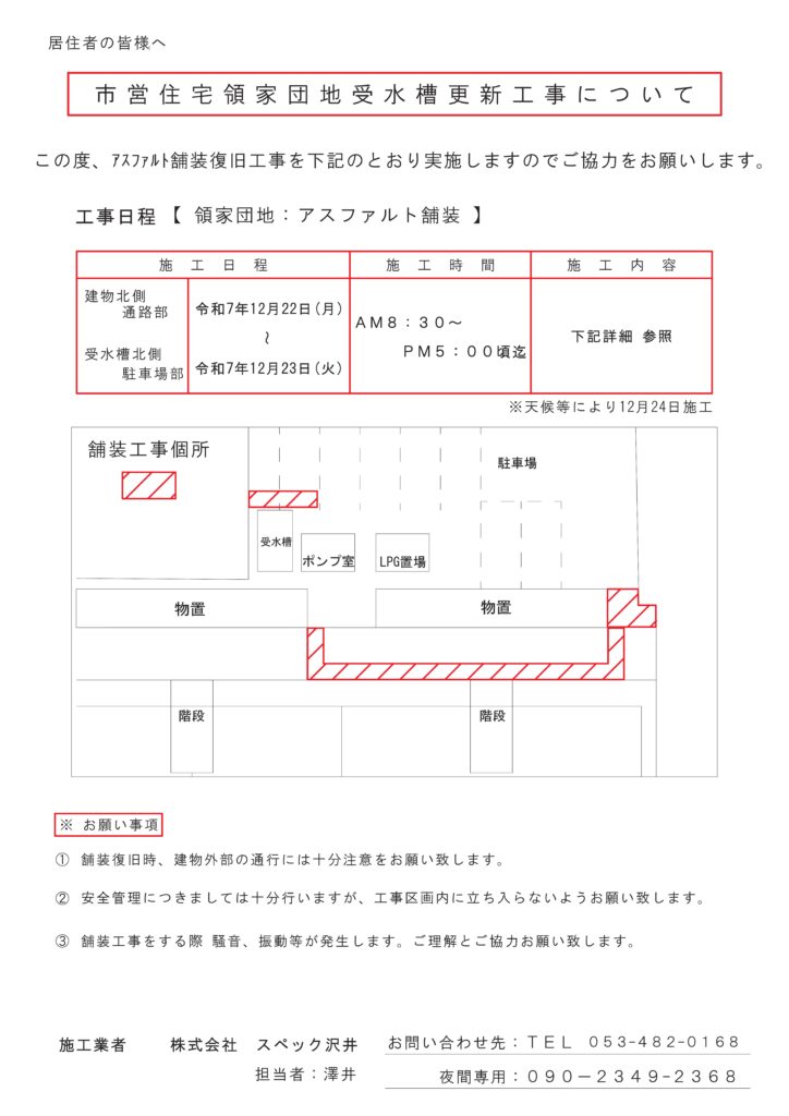 施設御利用者の皆様には、ご不便をお掛け致します。ご理解 ご協力をお願い致します。